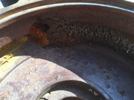 (3)3號(hào)隔板φ508mm凸槽缺陷:厚2.76mm,高4.3mm,弧長(zhǎng)97.7mm,******磨損深度4.3mm,修復(fù)面積1.11dm2。